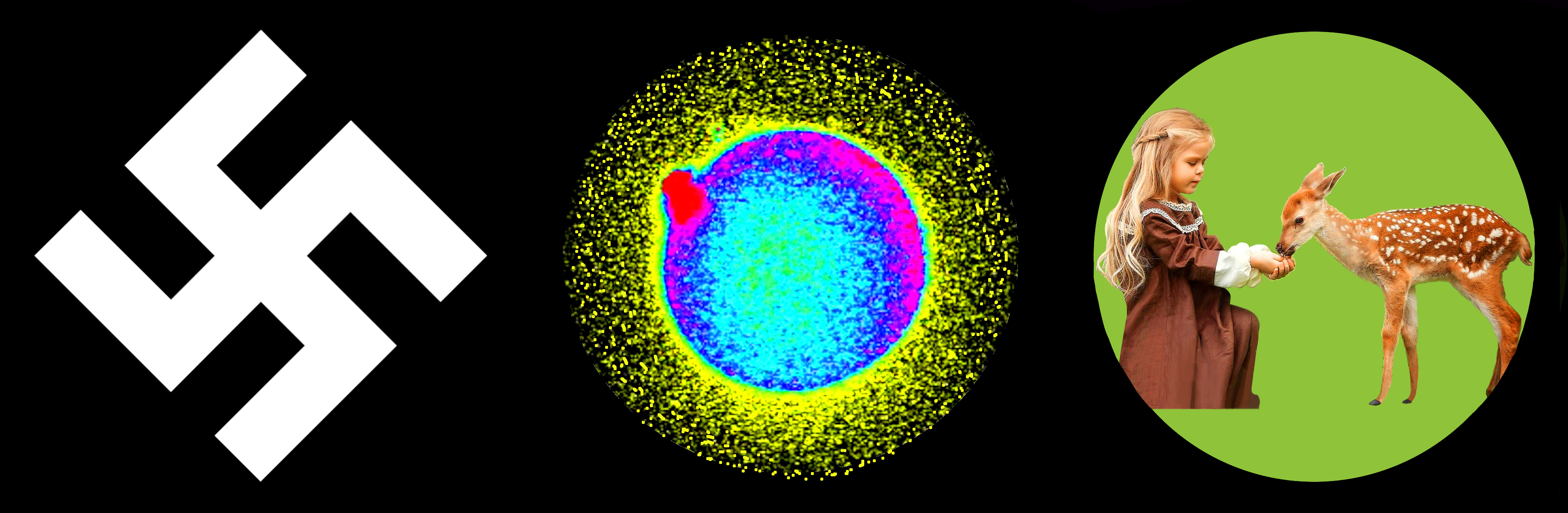 Symbols of (a) enlightenment (Swastika), (b) creation (the zinc fireworks of human egg fertilization) and (c) results of (a) + (b)
