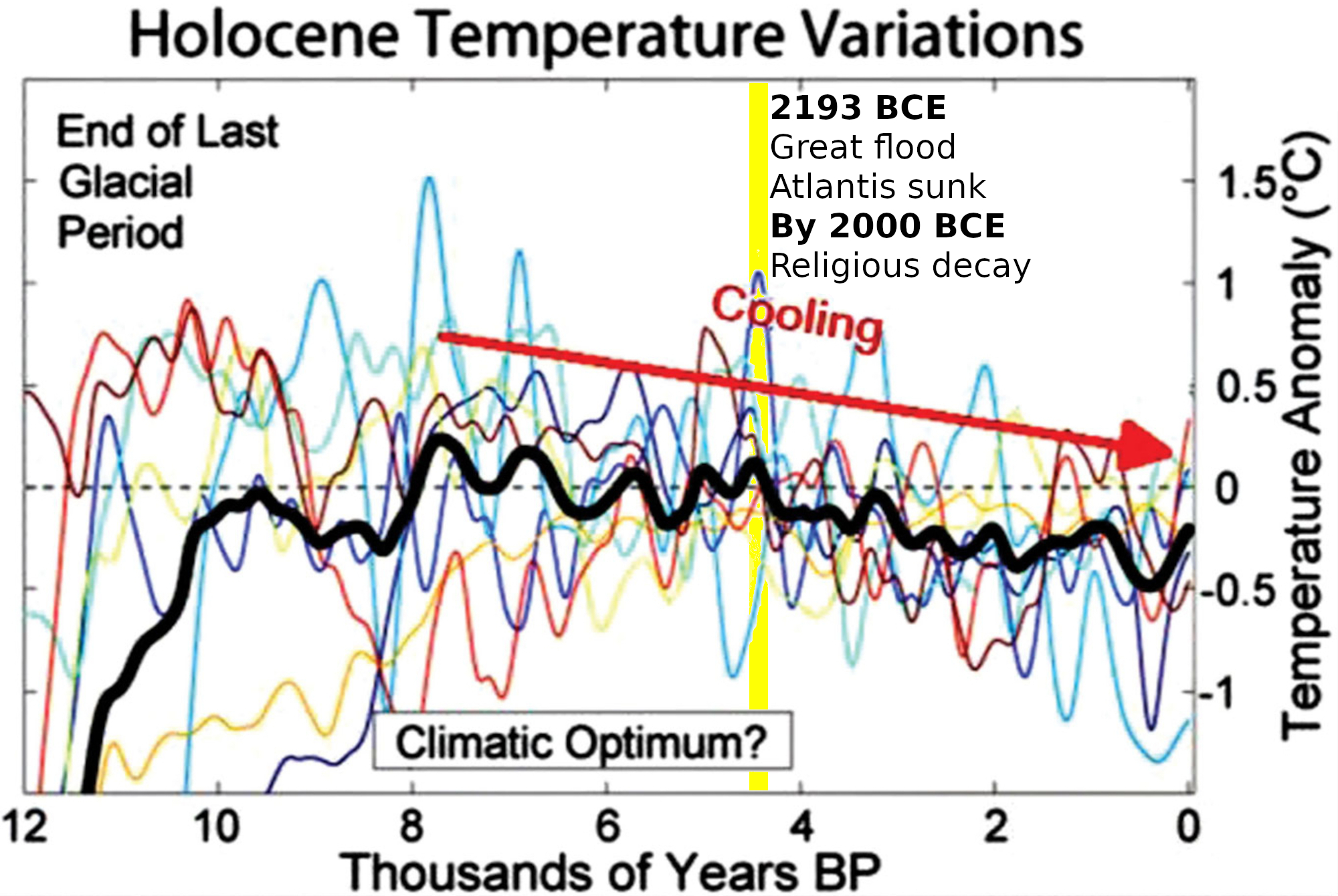 Holocene, great flood, and religious decay