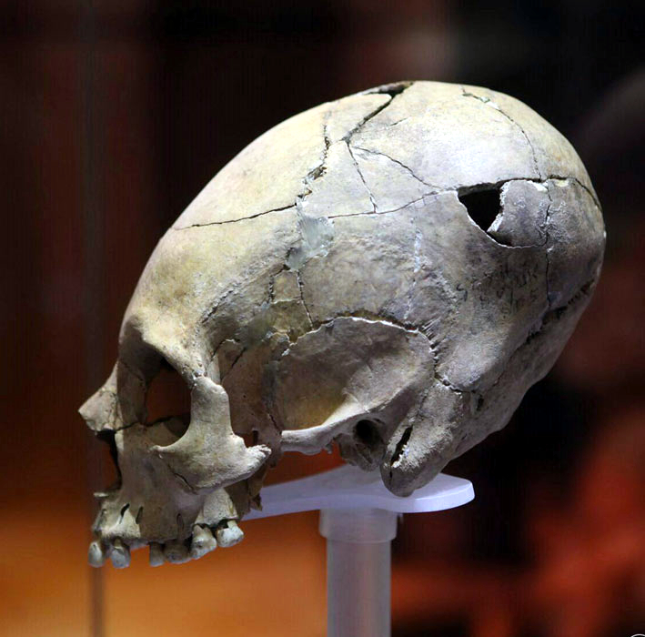 One of many long skulls in the Archaeological Museum in Antakya, Turkey