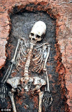 The skeleton of a long-skull woman found in Arkaim, Russia