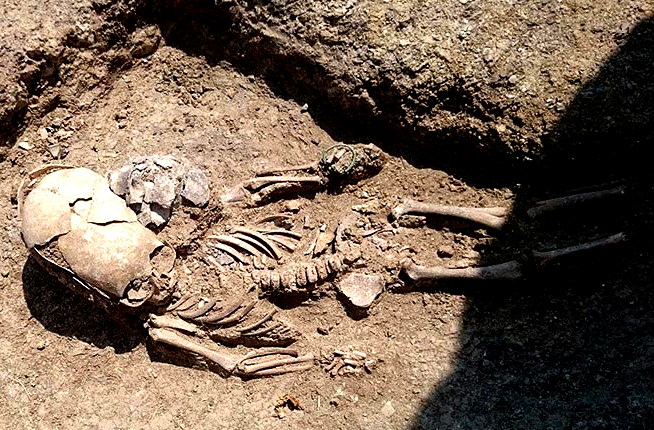 This long-skull skeleton of a 1.5-year-old boy was found near the village of Yakovenkovo in the eastern part of the Crimean Peninsula. His grave dates to the second century CE.