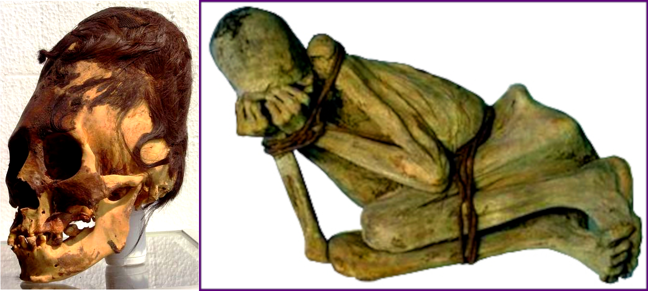 Shown in the above images are some of the long skulls and full body remains from the Paracas desert of Peru.